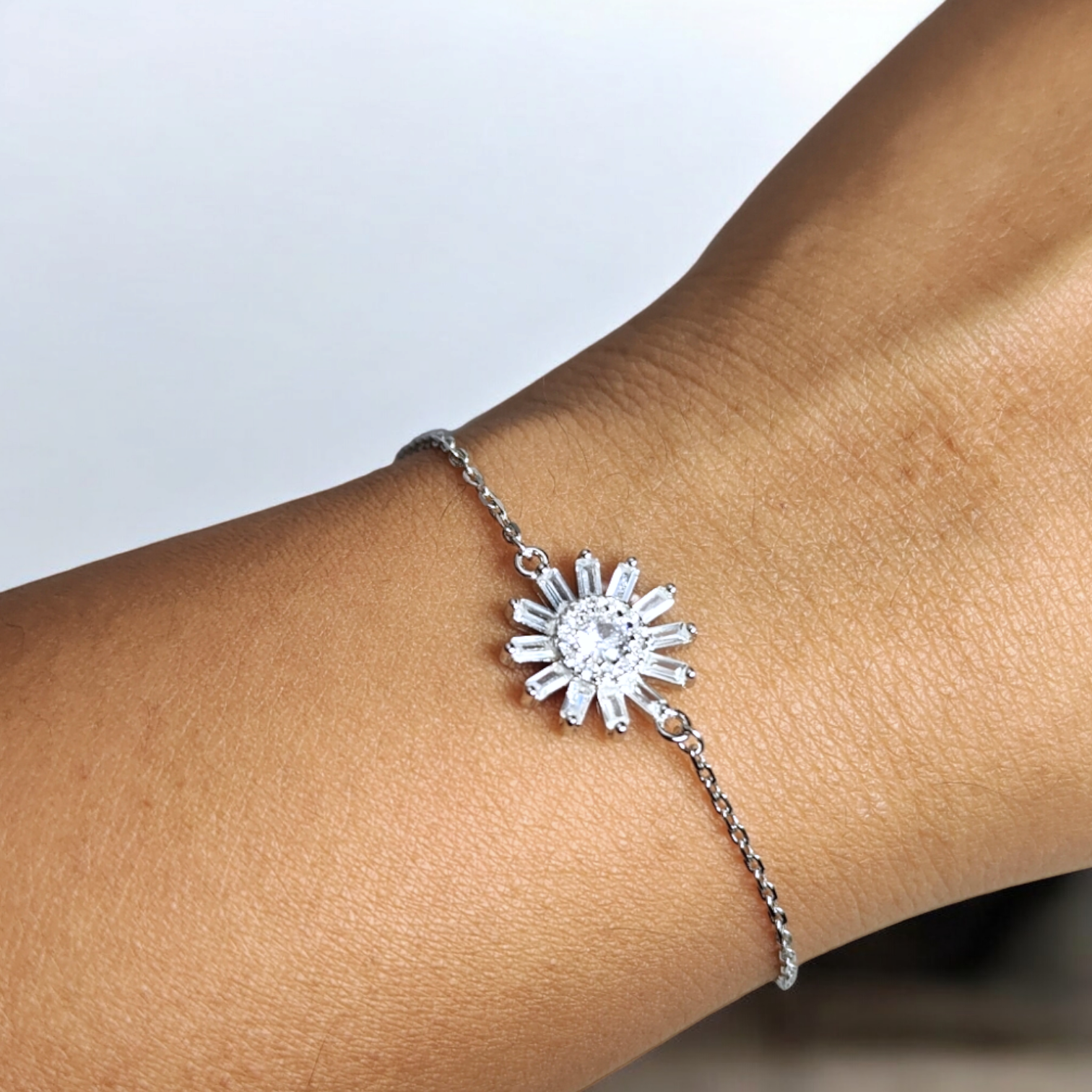Style Suggestion: Wear the Blooming Baguette Silver Bracelet solo for a refined, minimalist look, or layer it with slim bangles to create a chic, stacked style.