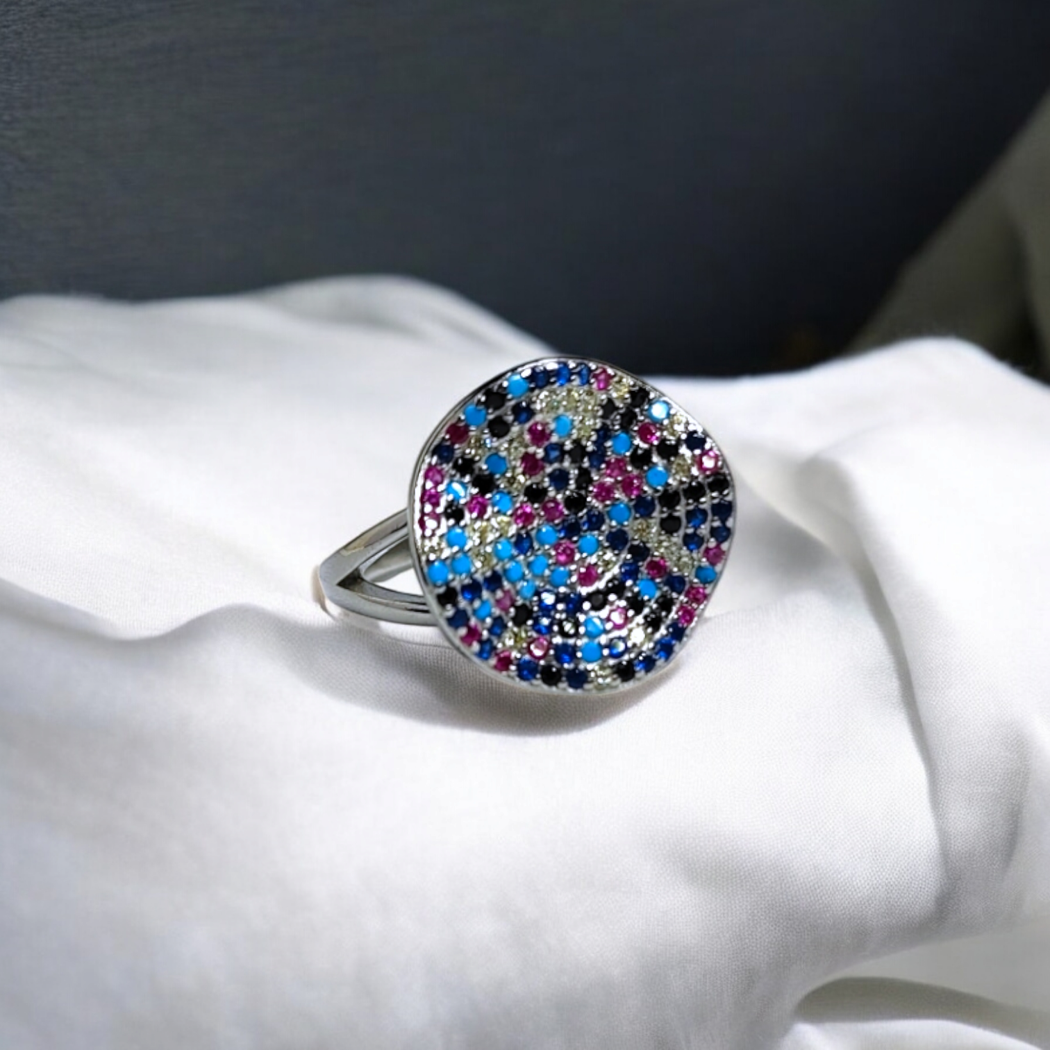 Add a splash of vibrant colors to your style with the Kaleidoscope Spark Ring, a true masterpiece of elegance and charm.
