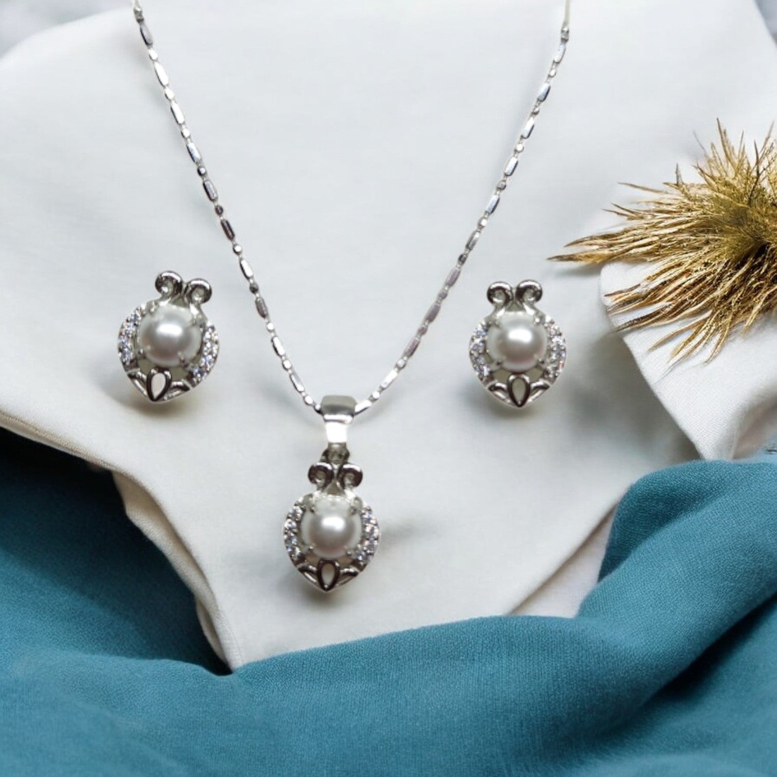 Add a touch of timeless elegance to your collection with this stunning teardrop pearl jewelry set. Featuring a lustrous pearl framed by a teardrop-shaped design, adorned with sparkling crystals, this set is perfect for both formal and casual wear. The intricate silver detailing adds a regal charm to your look while the pearls symbolize purity and grace. Crafted from high-quality 925 silver, this set offers both beauty and durability.